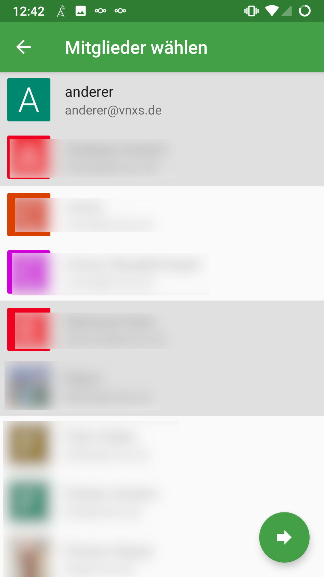 Danach kann man die gewünschten Mitglieder für die Gruppe aus der eigenen Kontakt-Liste auswählen:
