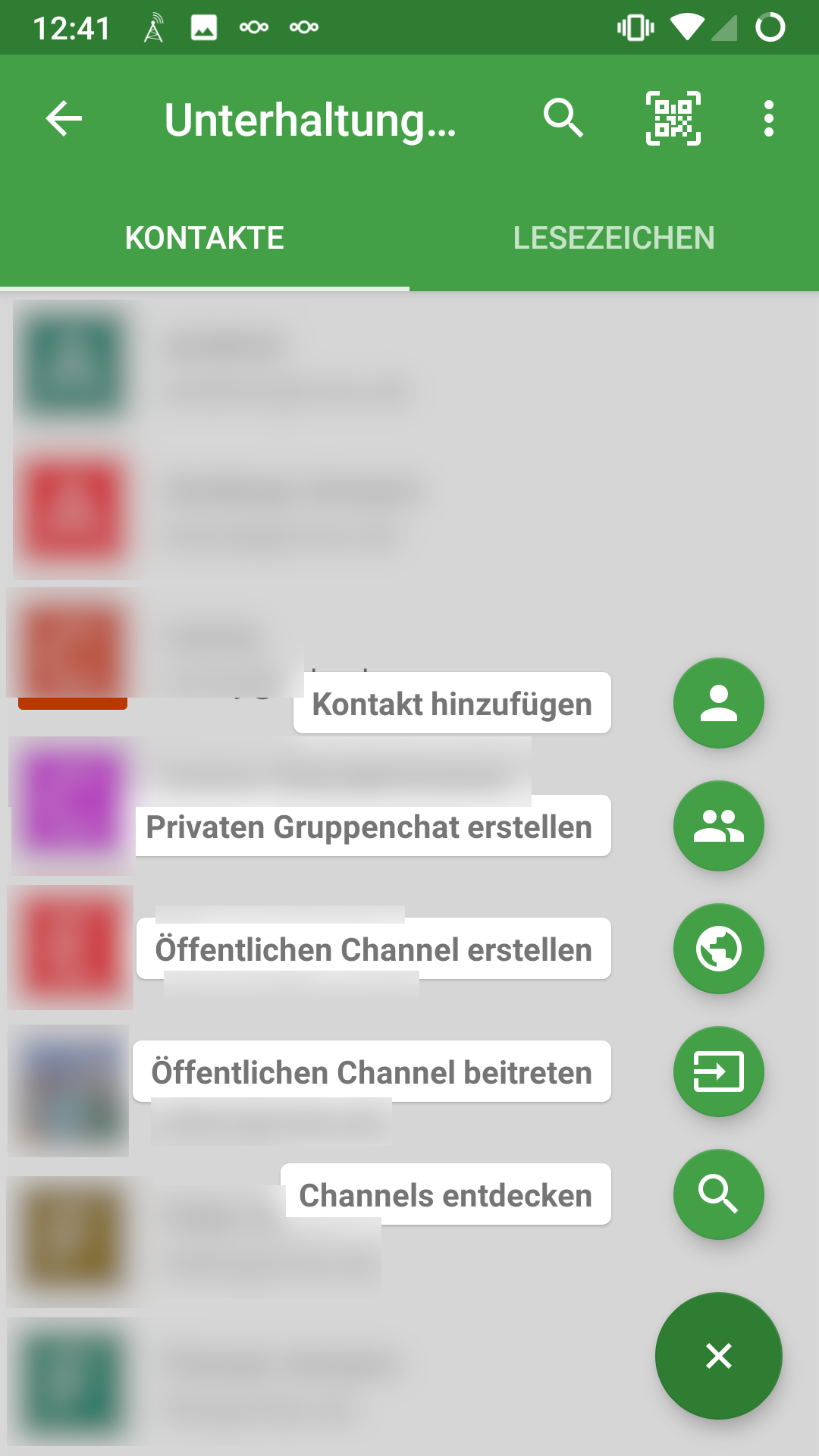 Damit wechselt man zu seinen Kontakten, beziehungsweise Lesezeichen: