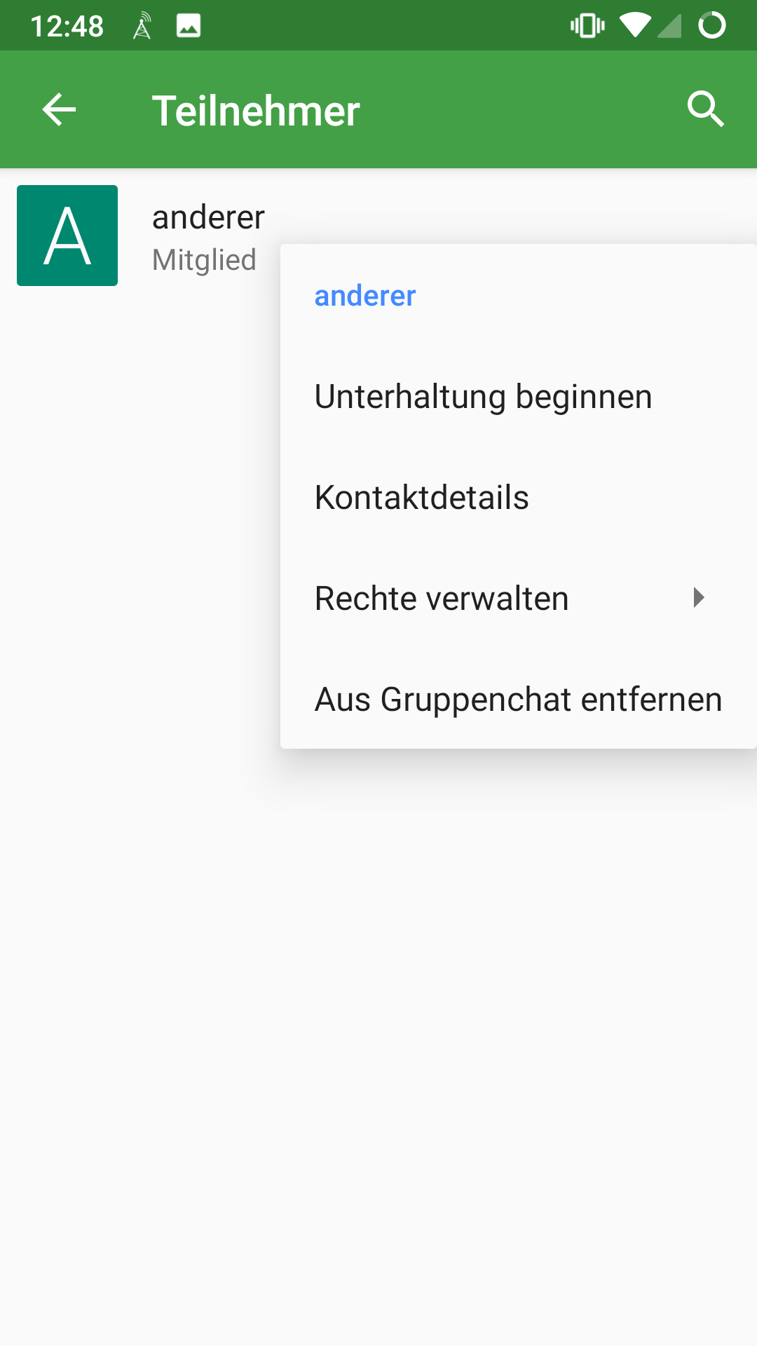 Mit einem langen Klick auf einzelne Teilnehmer kann man deren Status verändern, zum Beispiel sie aus der Gruppe ausschließen.