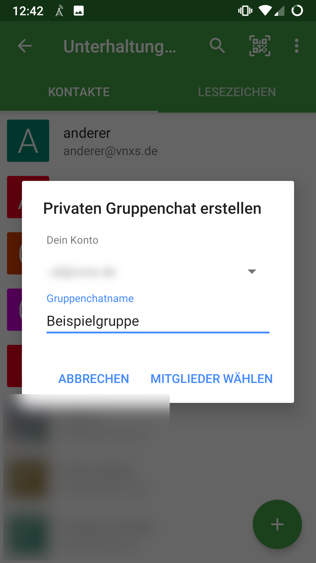 Danach kann man die gewünschten Mitglieder für die Gruppe aus der eigenen Kontakt-Liste auswählen: