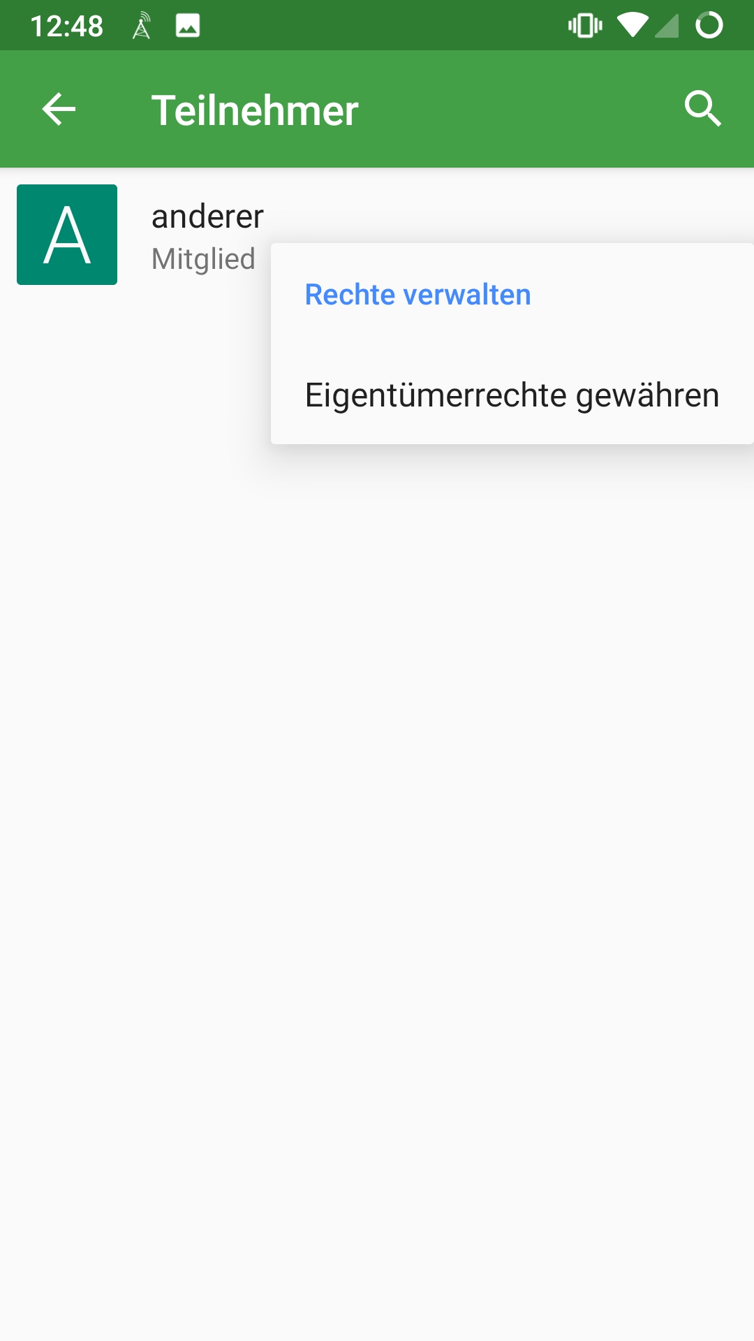 Mit der Option "Rechte verwalten" kann man einzelne Teilnehmer zu Eigentümern der Gruppe machen, beziehungsweise ihnen dieses Recht wieder entziehen.