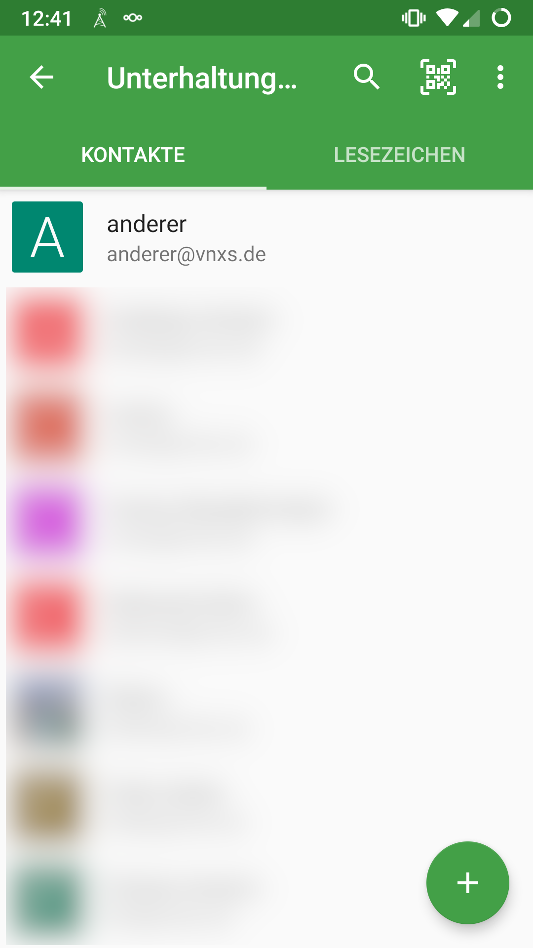 Der oberste Knopf dient dazu, neue Kontakte hinzuzufügen. Hierzu muss man die XMPP Adresse des Kontaktes kennen. Diese muss nicht auf dem vnxs Server sein, es ist möglich XMPP Kontakte von beliebigen Servern hinzuzufügen: